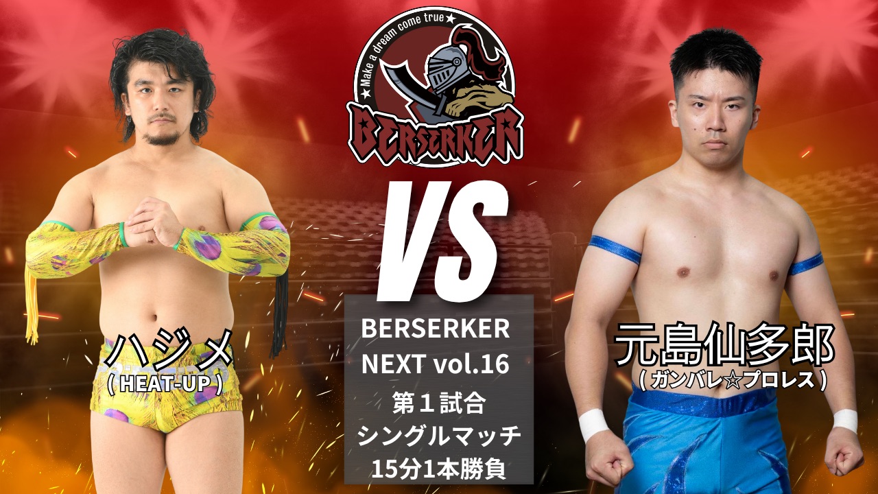 準レギュラーのヒートアップのハジメはガンバレ☆プロレスの元島仙多郎と対戦。