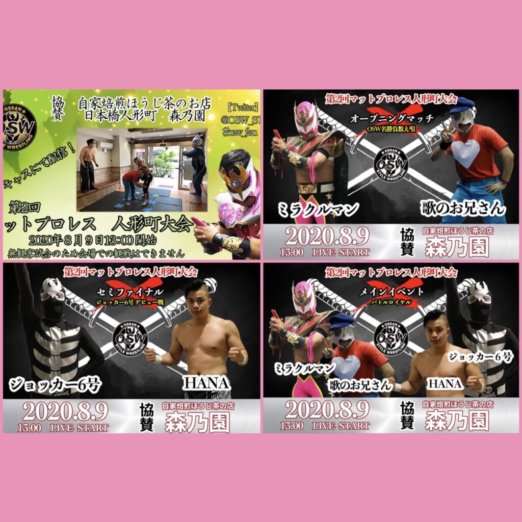 8月9日(日)13時から第2回マットプロレス人形町大会をツイキャスにてプレミアム生配信いたします。