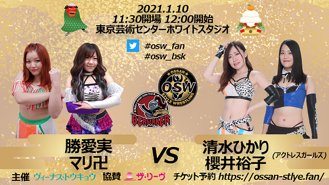 12.20北千住大会で小林香萌&高瀬みゆきに敗れた勝愛実とまり卍の愛卍は1.10北千住でのリベンジをアピール。しかし、小林はスケジュールがNGと高瀬に全権を委ねた。高瀬は「OSWにはベテランに立ち向かっていくBERSERKERというブランドがあります。アクトレスで今一番伸びたいと思っている、厳選された二人を用意します。その二人を倒したら考えます」と返答。愛卍はアクトレスの二人を倒し、改めて小林と高瀬と戦うことを誓った。アクトレスからColor’sの清水ひかりと櫻井裕子の二人が参戦することになった。