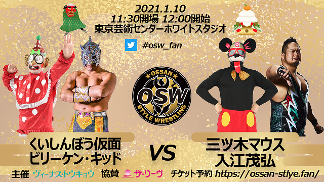 三ツ木マウスと対戦した#STRONGHEARTSの「ディズニー大好きレスラー」入江茂弘は三ツ木マウスのパーさん&ブルートのセコンド介入など腹黒殺法に苦戦しながらも、最後は大好きな夢の国のキャラクターを冒とくされた怒りをぶつけ勝利。試合後は「顔を見せて謝れ!」とパーさんのマスクをかぶった後藤恵介、ブルートのマスクをかぶった瀧澤晃頼を謝罪させる。しかしマスクを脱がない三ツ木マウスに詰め寄り「謝れ!」と詰め寄る。「しょうがないな」と三ツ木マウスが入江だけに素顔を見せる。「先輩じゃないですか!元同じグループの先輩じゃないですか!」と思わぬ正体に驚く入江。三ツ木マウスは「君はまだ日が浅いけど、これがフリーランスだよ。まさかここで戦うとは…プロレス界は小っちゃくて狭い世界だけどいろんなプロレスがあって、今日も入江君がやったみたいな素敵なプロレスだってお客さんが求めていて、そんな誰もがケンカをしない平和で世界がまるで一つになるような、そんなあなたの大好きな国なんじゃないですか、ここは。小さな世界、世界は一つ、みんなで手をつないで輪になって世界が大きく回れば、平和になる。イッツ・ア・スモールワールド!」と絶叫。「イッツ・ア・スモールワールド」が鳴り始め、壮絶な版権との戦いは全員で手を取り輪になって大団円で幕を閉じた。そんな入江と三ツ木マウスがタッグを結成。ビリーケン・キッド&くいしんぼう仮面と対決する。