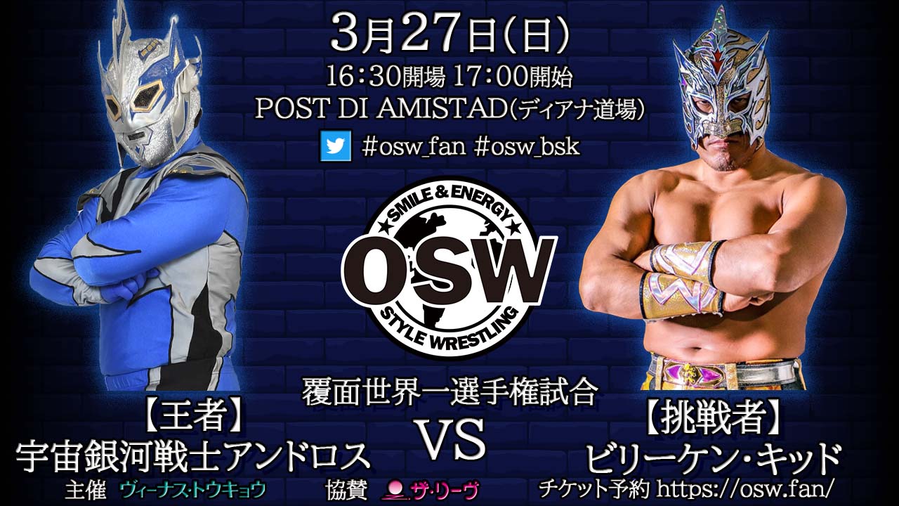 挑戦者のビリーは「時は来た」と一言。王者のアンドロスは「前回(2.5新木場)で『太陽系』って新必殺技を出したけど、今回は『縄文スープレックス』って聞き間違えかな?って思う必殺技を考えたから」と王座防衛を誓った。