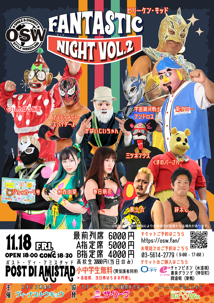 11月18日(金)<18時30分試合開始>『FANTASTIC NIGHT VOL.2』ポスト・ディ・アミスタッド大会の一部対戦カードが決定いたしました。