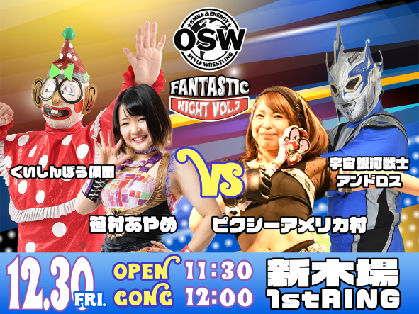 12月30日(金)<12時試合開始>新木場1stRING大会『FANTASTIC NIGHT VOL.3』のツイキャスプレミア配信が決定しました。