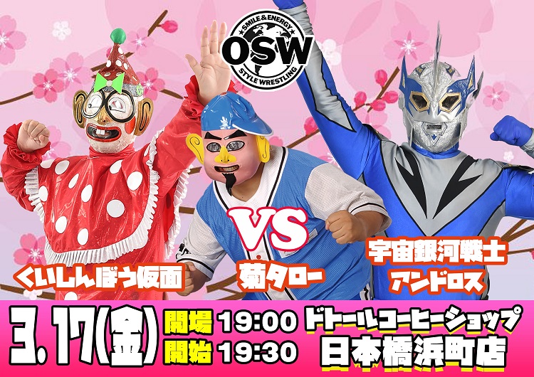 3月17日(金)(19:30試合開始)に開催される『OSWドトールマットプロレスvol.10』の対戦カードが決定致しました。