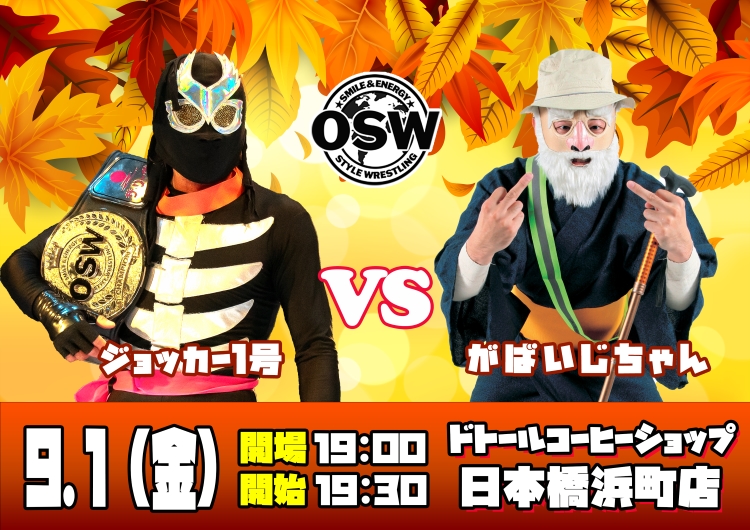 2019年9月1日に旗揚げ戦をおこない4周年を迎えるOSW。旗揚げ記念日はOSWの地元でドトールマットプロレスを開催。