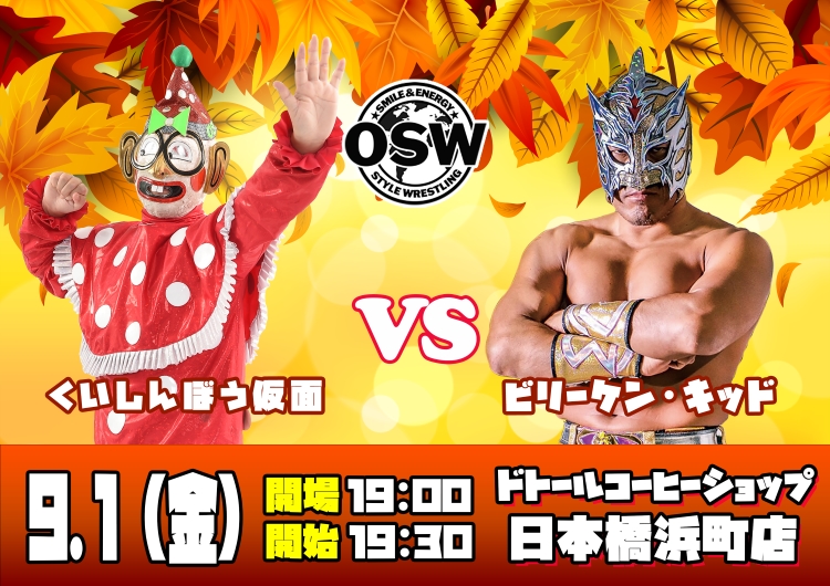 この日で旗揚げ4周年を迎えるOSW。OSWを旗揚げしたくいしんぼう仮面とOSWのエース、ビリーケン・キッドが一騎打ち。