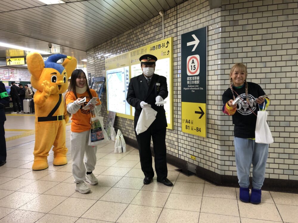 都営新宿線・馬喰横山駅にて久松署生活安全課、駅職員の皆様と警視庁防犯アプリ「Digi Police(デジポリス)」の紹介とチラシ配布をおこないました。