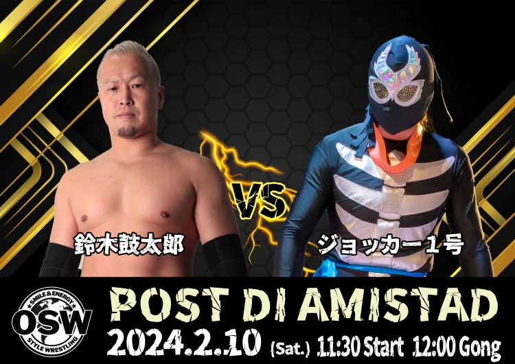 2月10日(土)<12時試合開始>川崎、ポスト・ディ・アミスタッド大会『OSW DAYBREAK Vol.3』の全対戦カードが決定しましたのでお知らせします。