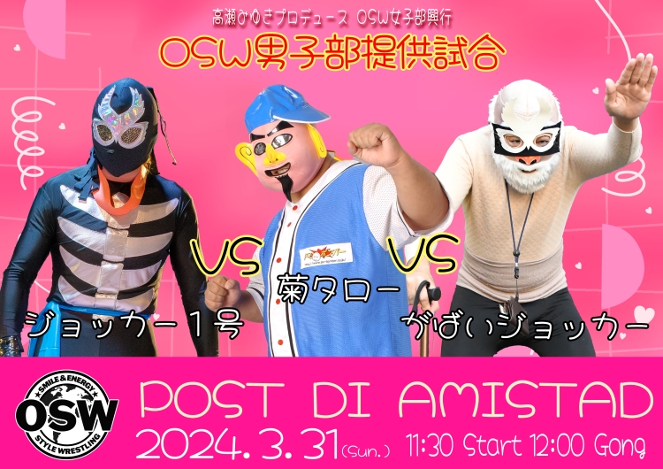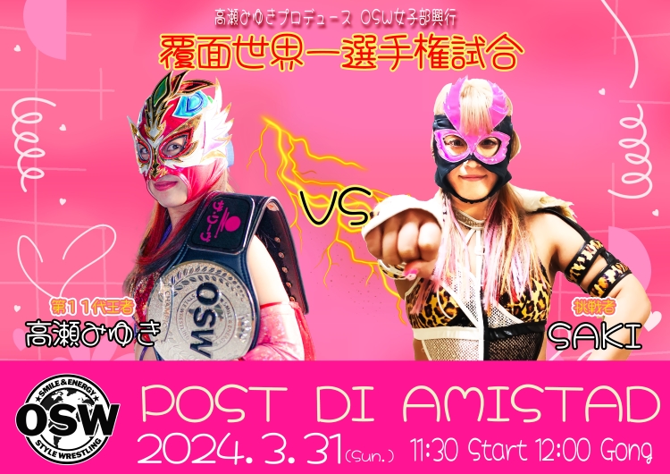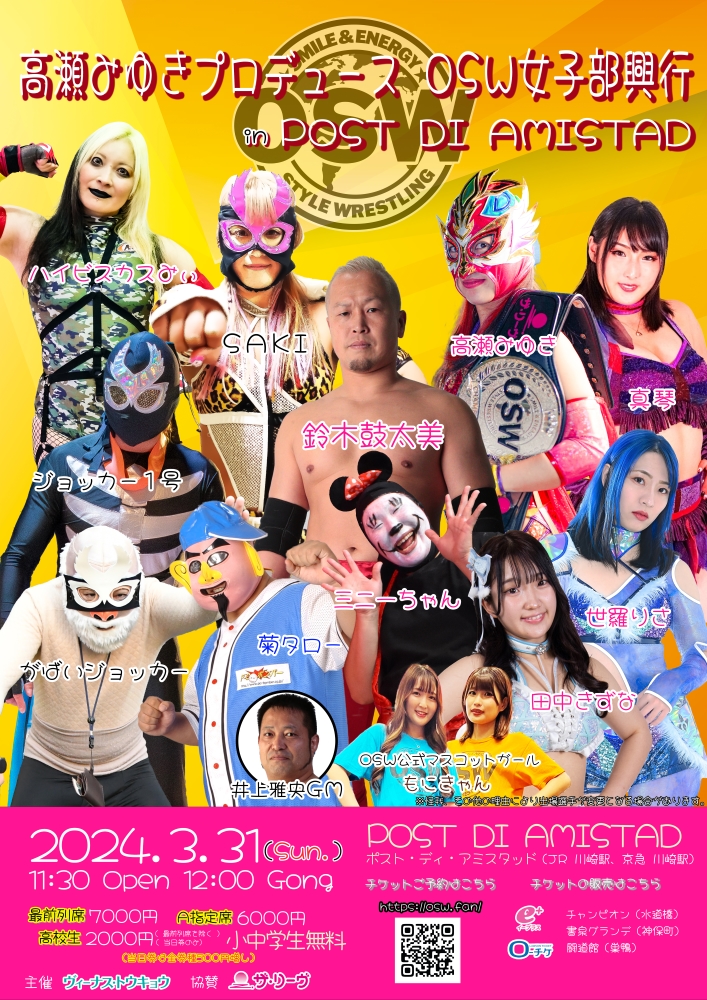 3月31日(日)川崎、ポスト・ディ・アミスタッドでおこなわれる「高瀬みゆきプロデュースOSW女子部興行」の追加対戦カード&参戦選手が決定しましたのでお知らせいたします。